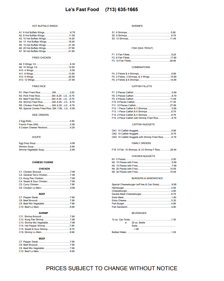 Welcome to Le's Fast Food, a cherished gem in Houston, TX, serving up delicious Chinese cuisine for over 28 years. Conveniently located at 8617 Mesa Dr, this spot has become a local favorite for its quick service and mouthwatering menu.